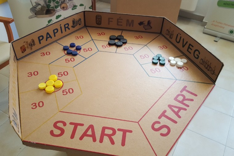 Erős kartonból készült, könnyen mozgatható egyszerű környezetvédelmi tematikájú